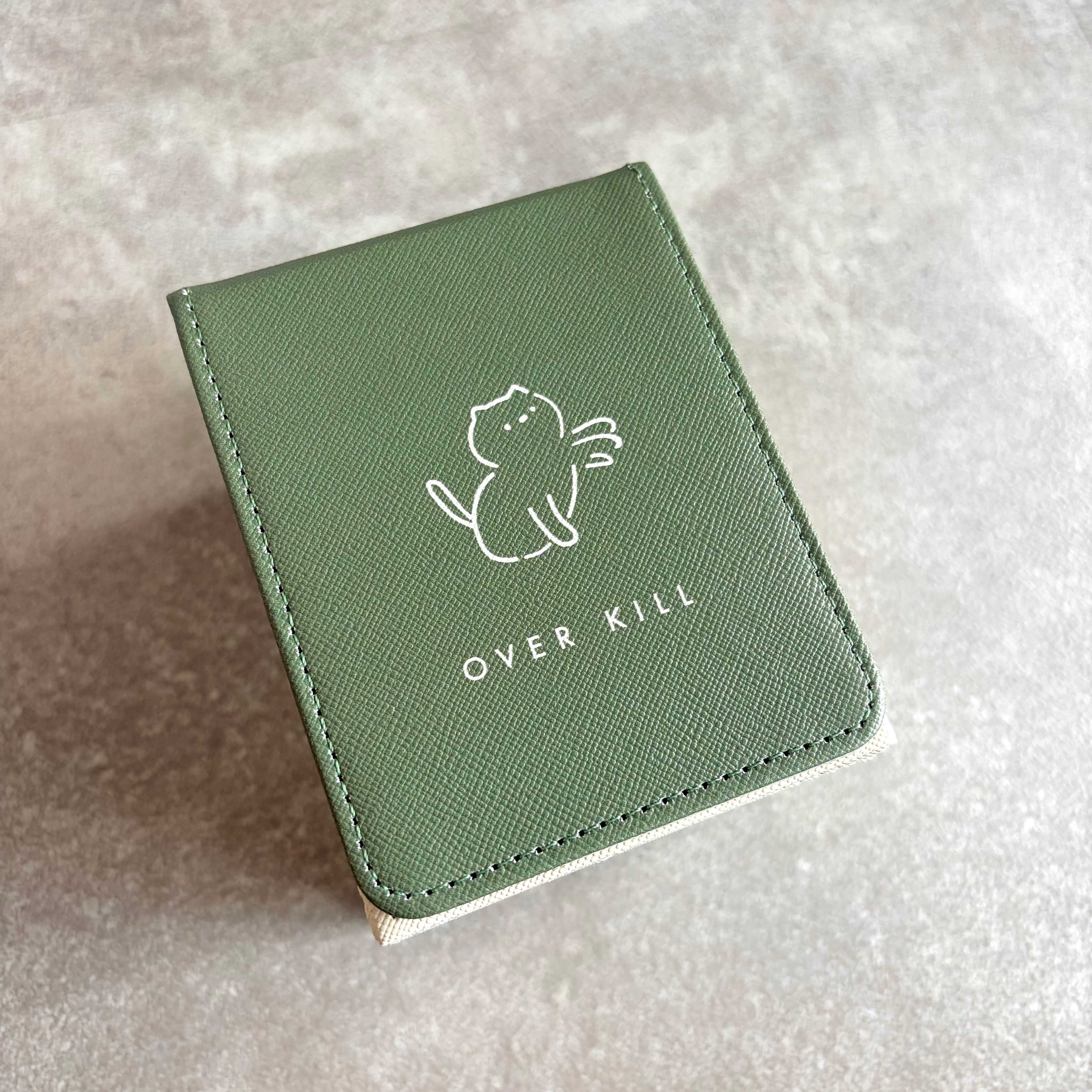 「おーばーきる」デッキケースにくすみグリーンのバイカラーが可愛いデッキケースが新登場ですっ!