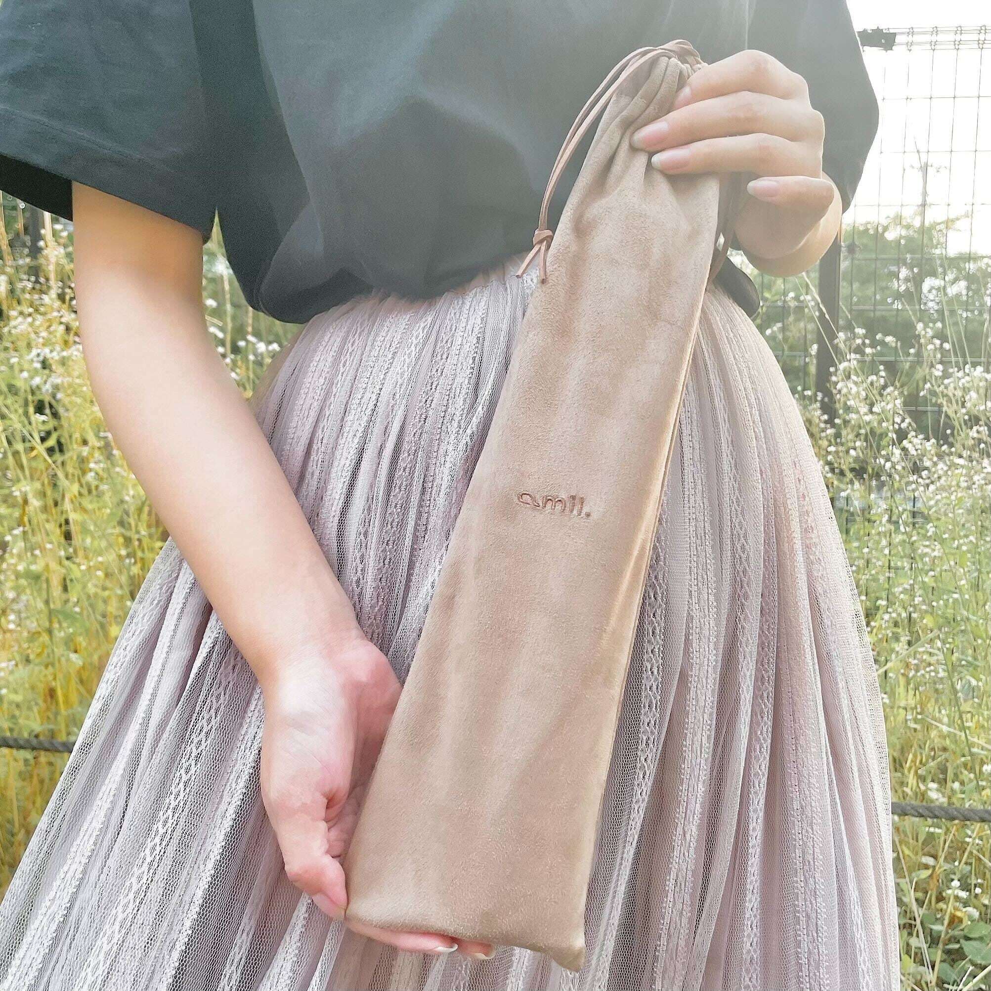 手触りの良いスエード地に、刺繍ロゴ入り。